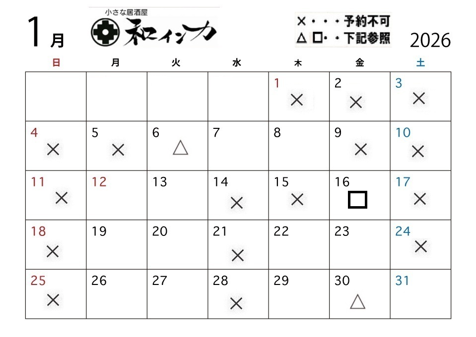 1月・2月の 12月19日(金)現在、予約状況は以下の通りです。