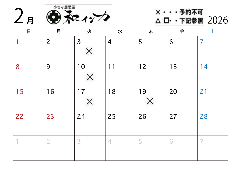 3月以降の予約状況は後日掲載します。 3月以降も電話予約は承っております。
