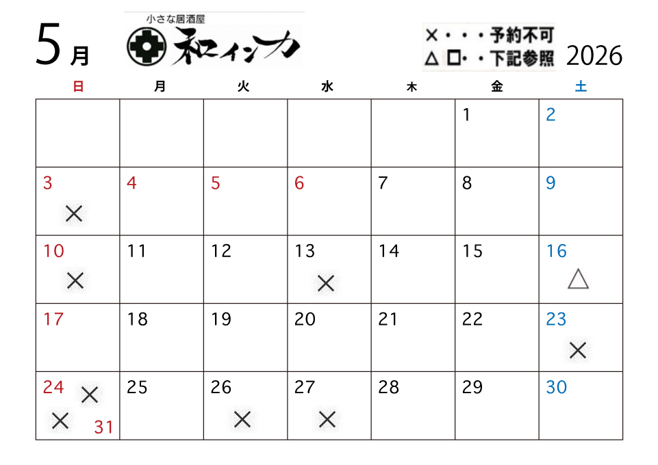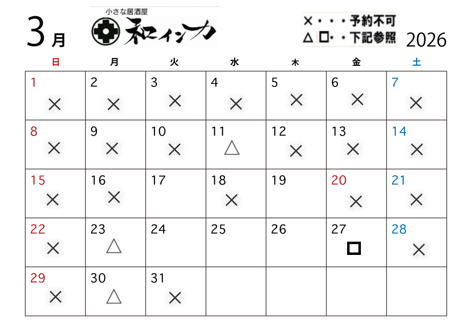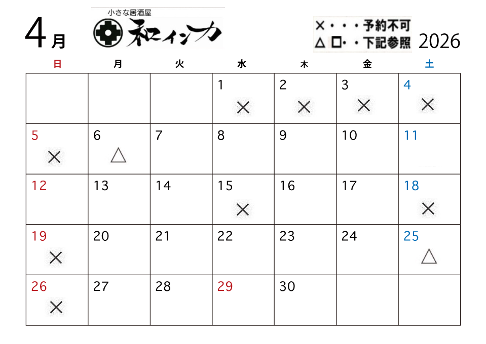6月以降の予約状況は後日掲載します。 6月以降も電話予約は承っております。
